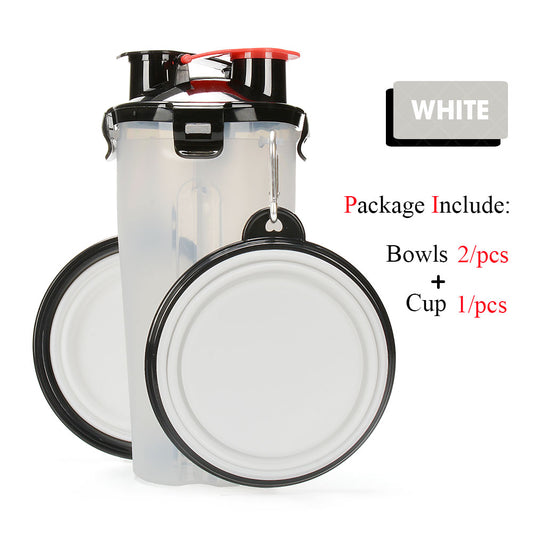 2 in 1 Pet Water Bottle Food Container With Folding Silicone